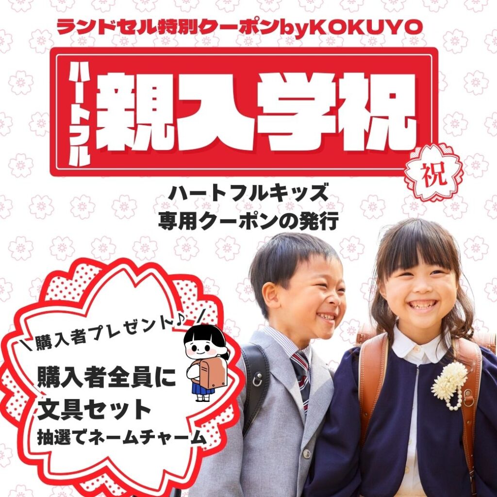 そこで、この度文具メーカーのKOKUYOさん と協力し、ハートフルメンバー限定の「新一年生応援企画」として「入学の準備を少しでも安心して迎えてほしい」という思いを込めて、特別なランドセルクーポンの発行をいただきました!