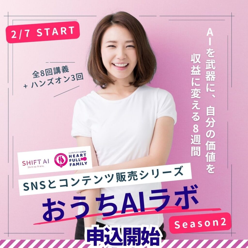 そんなタイミングで、いよいよ SHIFT AI 「おうちAI・ラボ」 シーズン2 の一般申し込みが、まもなくスタートします。