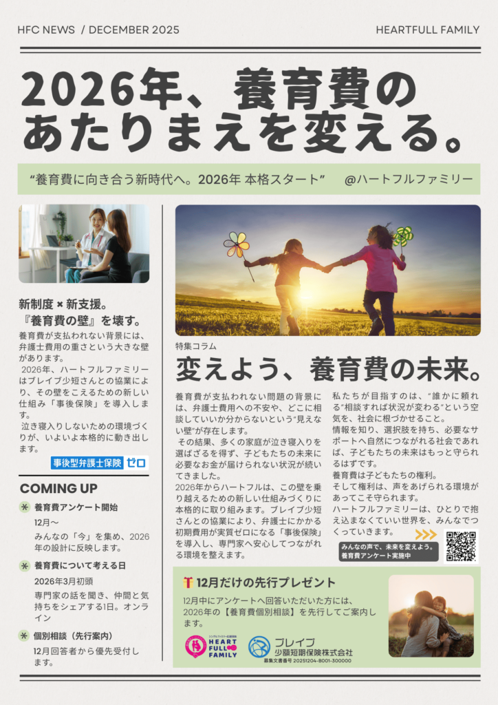 「養育費」というテーマに向き合う取り組みをスタートします。